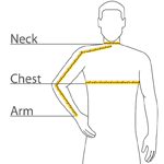 | Chest | 32-34 | 35-37 | 38-40 | 41-43 | 44-46 | 47-49 | 50-53 | 54-57 | 58-60 | 61-63 |